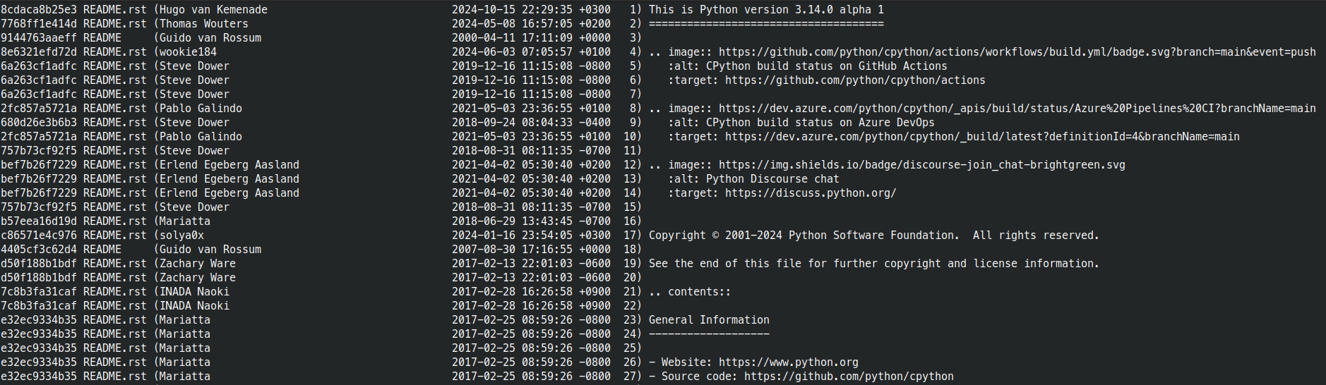 git blame -- README.rst