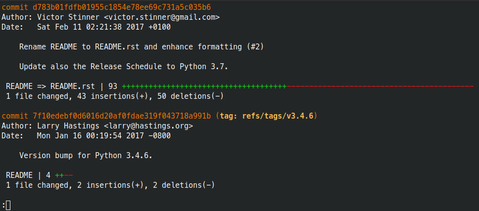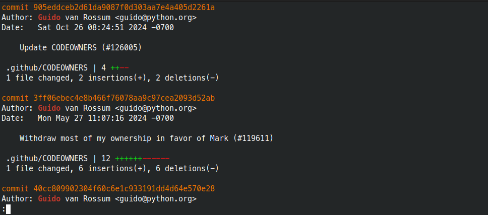 git log --stat --author "Guido"