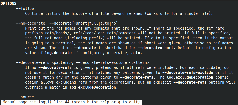 optionsgit log --help